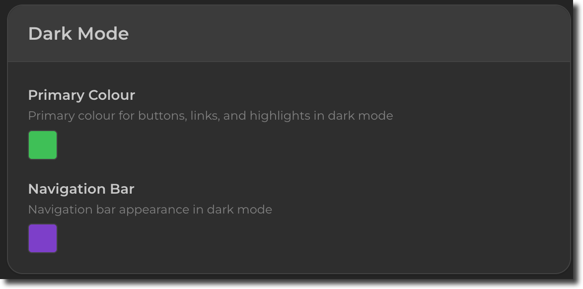 You can also change the colours that display for the dark mode. For instance: