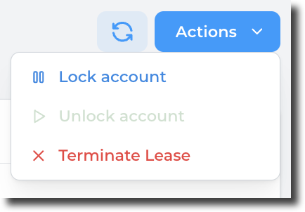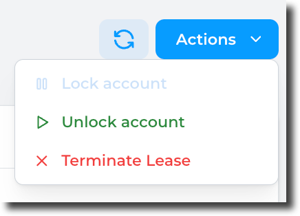 From the lease details page, click on the Actions button and select "Lock account":