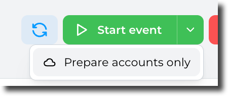 If you want to prepare the accounts before the event starts, click on the small arrow in the "Start event" button and select "Prepare accounts only":