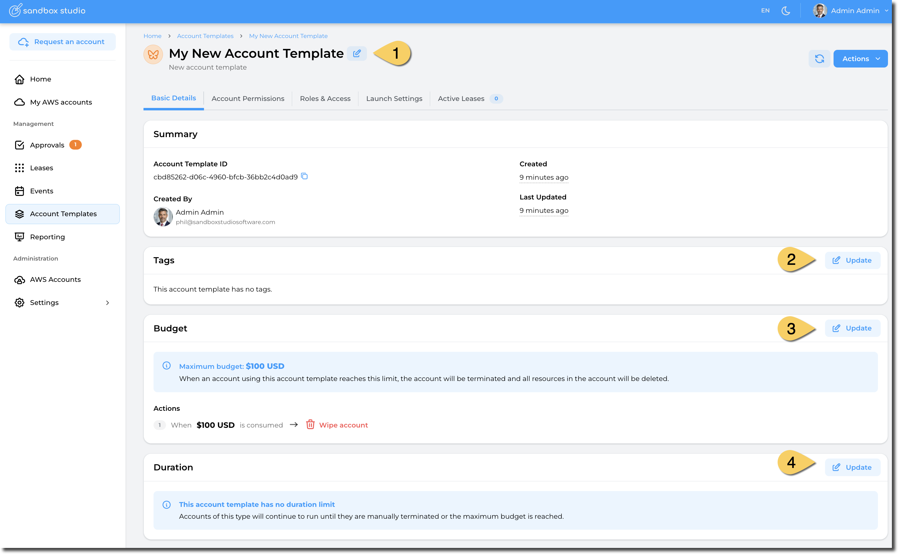 To update an account template, go to "Account Templates" and open the template you want to modify: