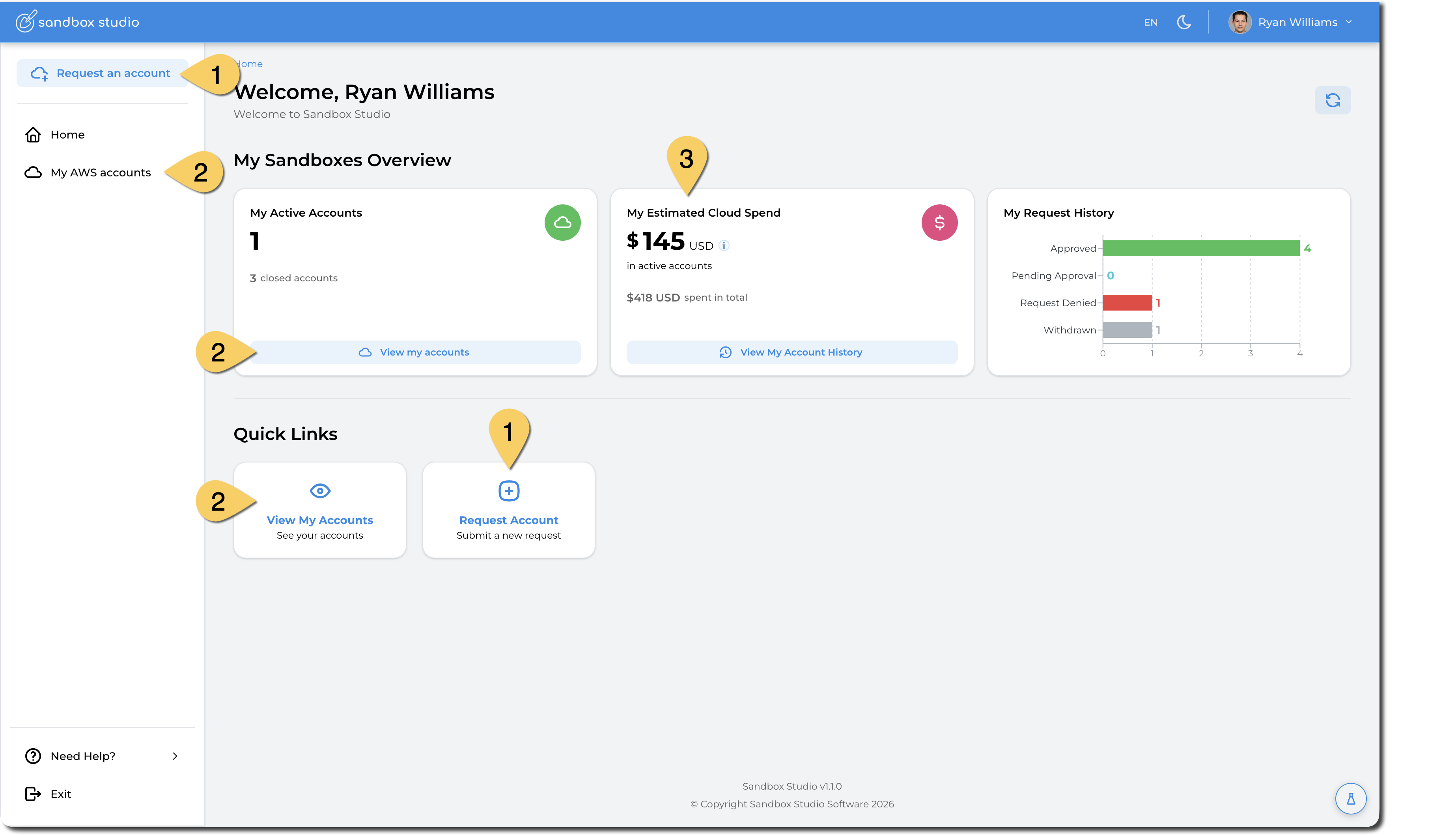 It is really important to monitor the duration and budget on all of your accounts. If they reach their thresholds , the accounts will (depending how your Sandbox Studio environment is setup) terminate and delete everything in that account. So if what you are working on is important, closely monitor the thresholds and/or move the account out of the sandbox environment into a production environment. You can request an account extension from your manager or administrator.