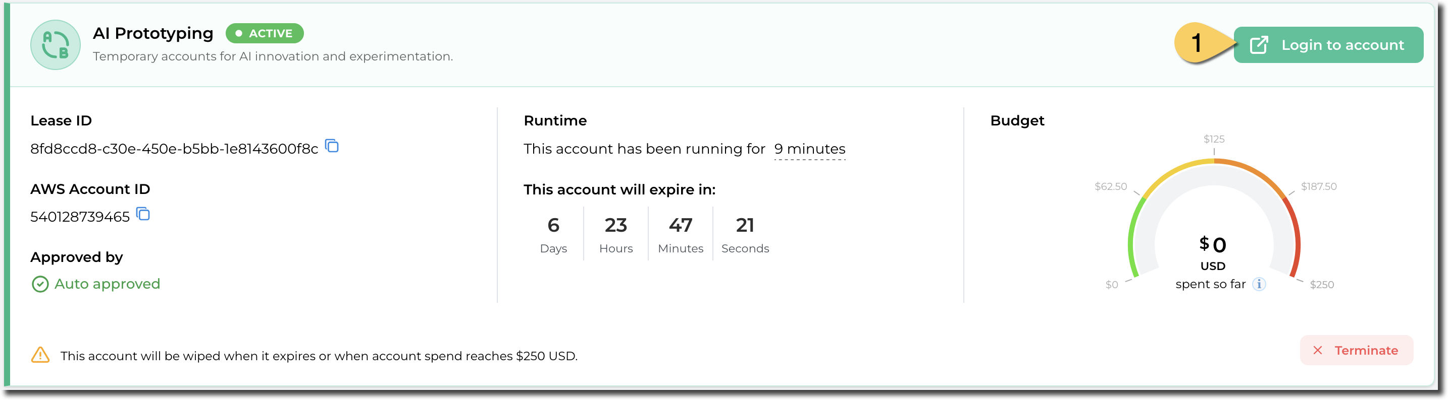 Once you’ve requested an account and the account is in an Active state, you can access login to the associated AWS console.