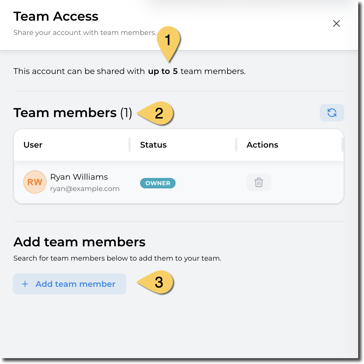 The maximum team size (including the account owner) is defined by the manager or administrator of the account type.